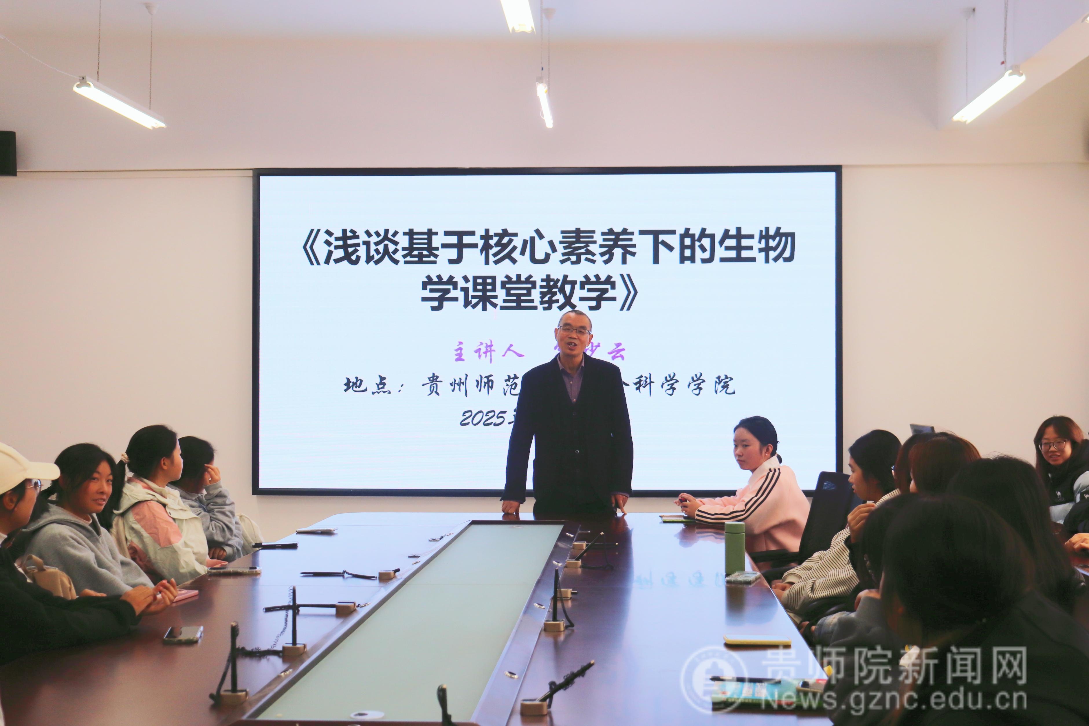 本网讯,11月14日,由主持人杨燕老师以及生物科学学院特邀孙少云专家,为25级生物科学二班全体学生带来《浅谈基于核心素养下的生物学课堂教学》专题讲座,聚焦优质生物课堂的构建路径,为师范生筑牢教学认知根基。