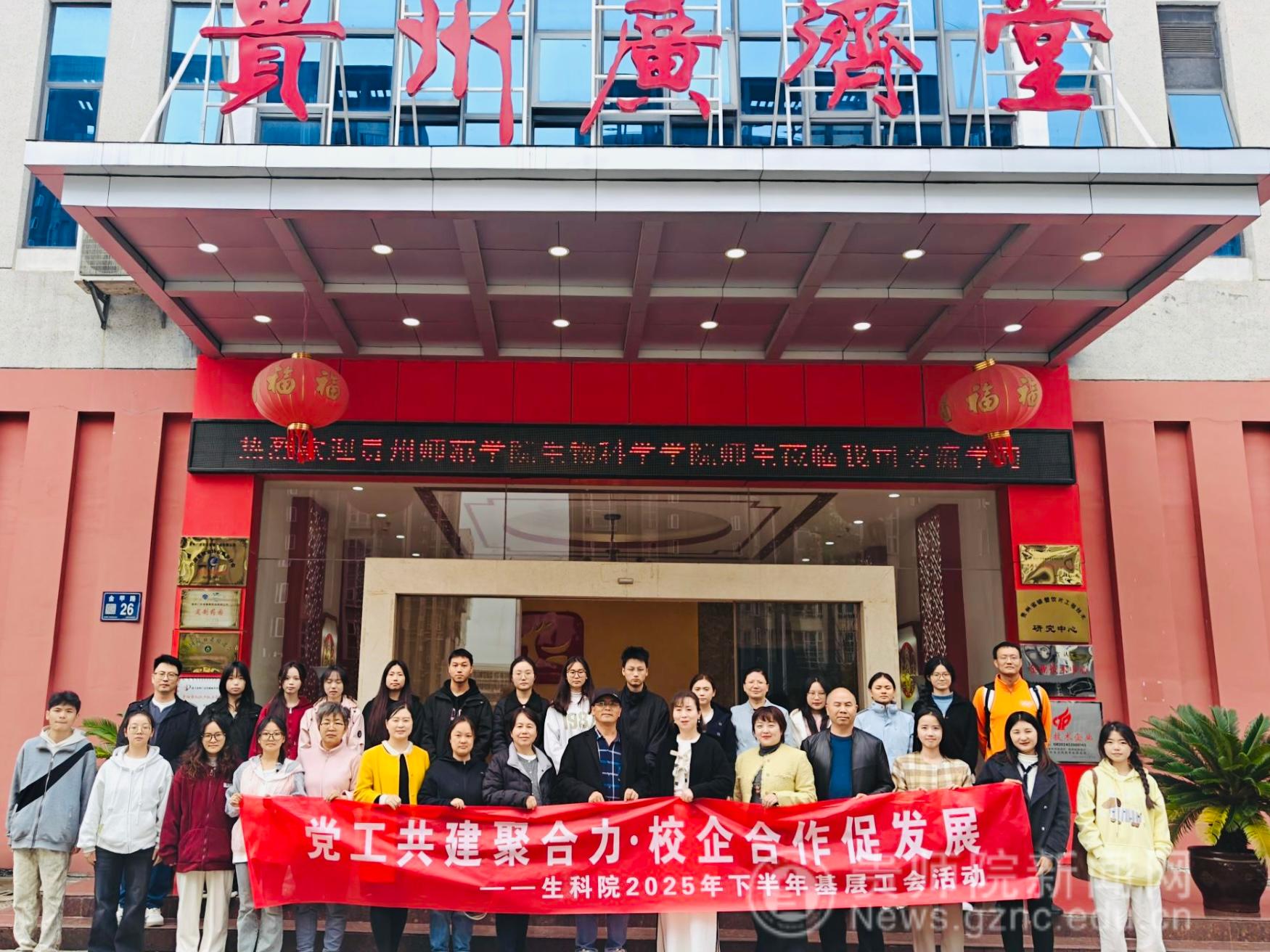 为加强教职工团队建设,深化校企合作,10月22日,生物科学学院组织教师前往贵州广济堂,开展以“党工共建聚合力·校企合作促发展”为主题的基层工会活动。活动于中午12:30自学校信息楼背面统一乘车出发,全体教师在简餐后,于14:30抵达贵州广济堂展开交流。到达广济堂后,广济堂总经理张童予以热情接待,学院优秀毕业生、现就职于贵州广济堂的高寒秋也全程参与,为此次校企交流增添了“校友纽带”特色。