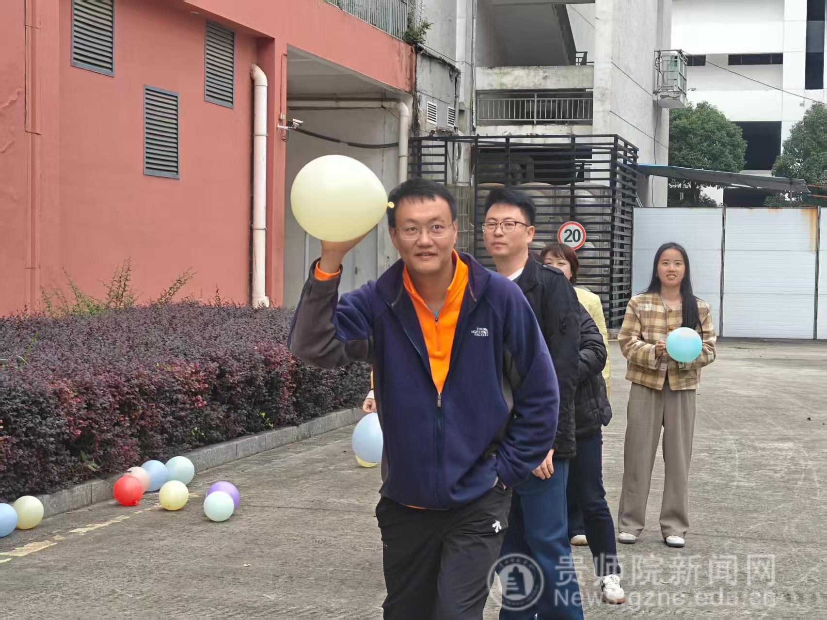 座谈结束后,轻松热烈的团队素质拓展环节随即开启。教师们被分为两支队伍,首先开展气球接力赛。比赛中,两队队员依次手持气球完成接力传递,既要保证行进速度,又要防止气球掉落,大家默契配合、相互鼓劲,场边加油声与欢呼声此起彼伏。气球接力赛结束后,跳绳活动接续进行,教师们或单人跳绳展活力,或组队跳长绳显协作,在跳跃与欢笑中进一步拉近了距离,充分展现出学院教师队伍的凝聚力与向心力。活动间隙,全体人员在广济堂合影留念,为此次校企交流留下珍贵瞬间。