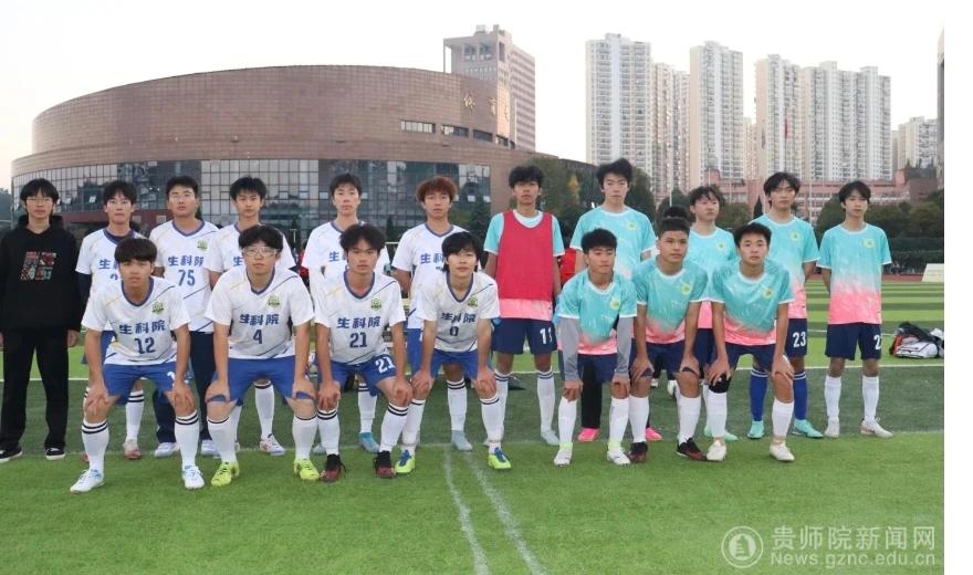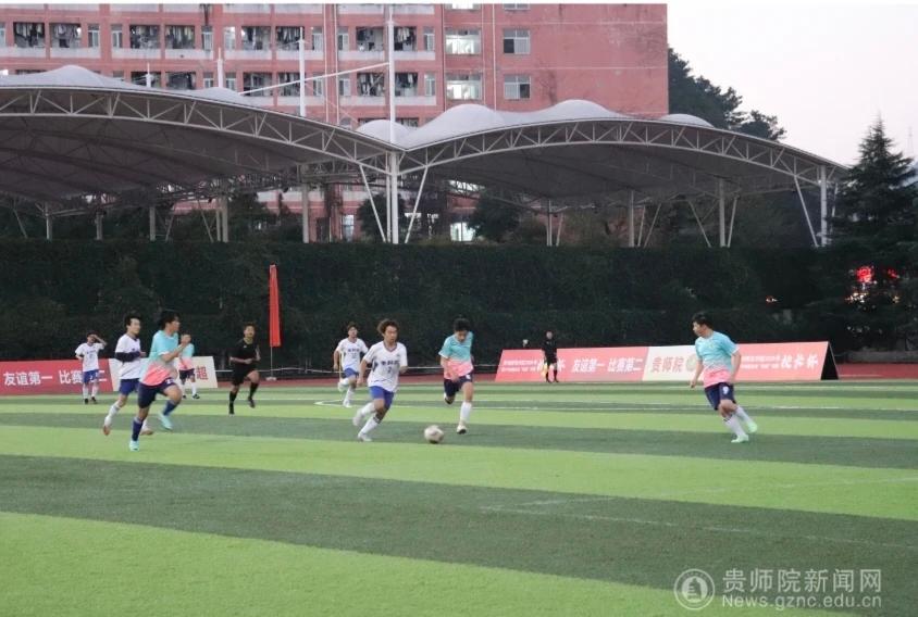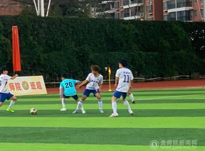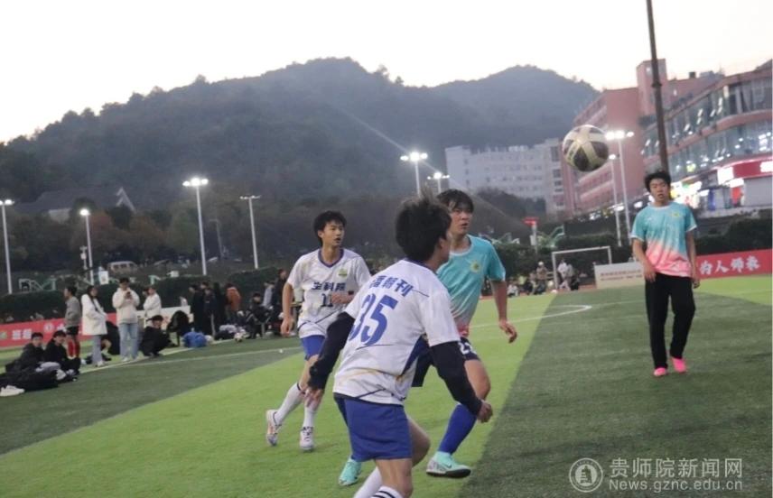 本网讯 11月27日,贵州师范学院足球场旌旗猎猎、气氛热烈,生物科学学院足球队与化学与材料学院足球队在此展开激烈角逐。身着白蓝配色队服的生科院学子斗志昂扬、意气风发,以饱满的热情投入这场充满热血与拼搏的绿茵赛事,用汗水诠释体育精神,为现场观众呈现了一场精彩的竞技对决。