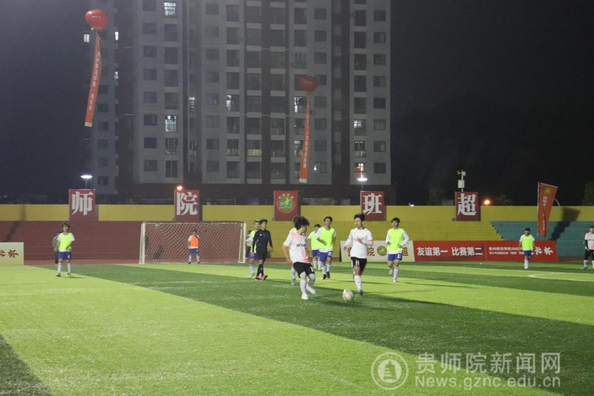 本网讯 12月3日,贵州师范学院足球场灯光亮起,生物科学学院与旅游文化学院足球赛在此开展。两队学子以球会友,完成了一场友好竞技。