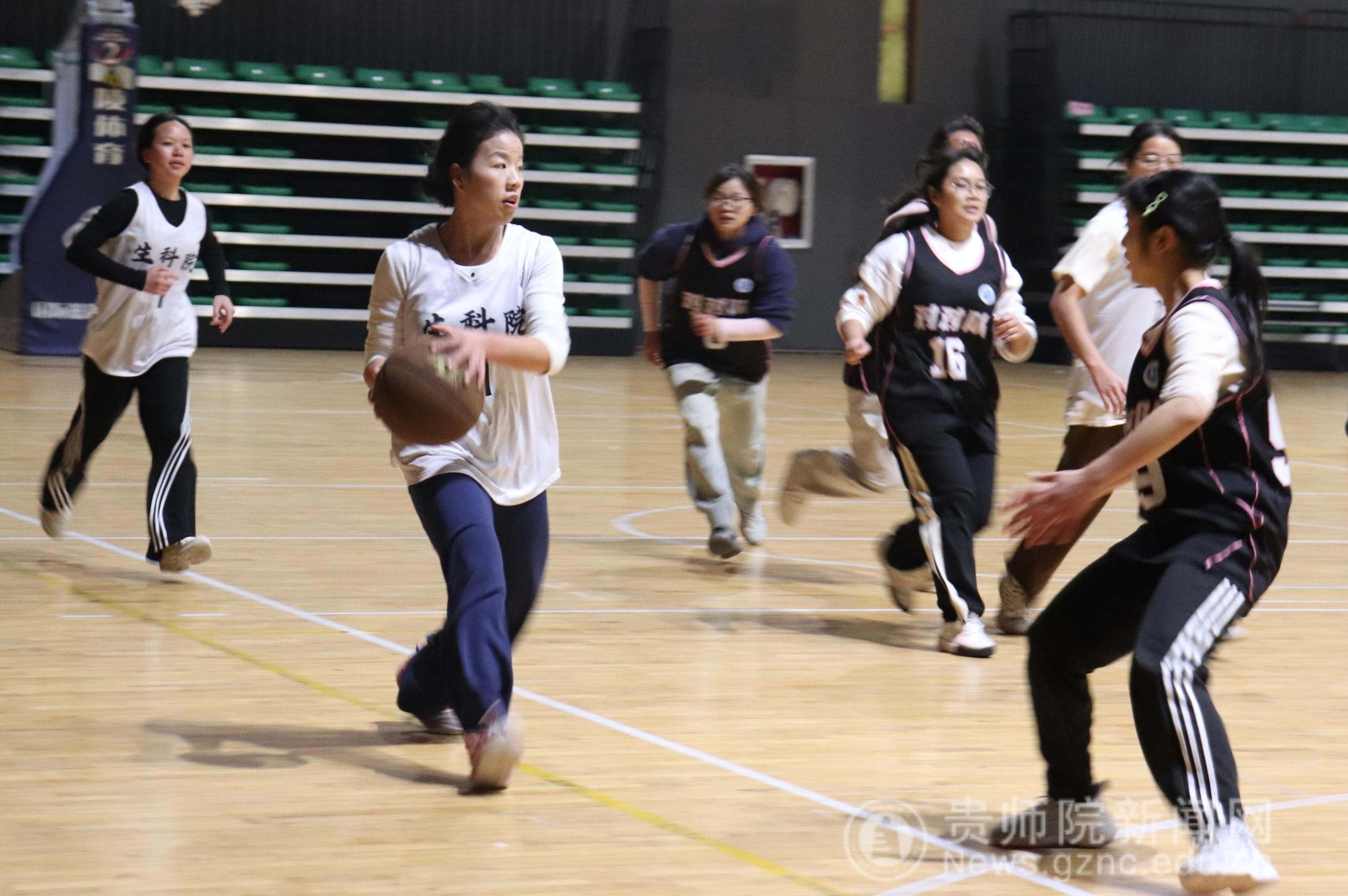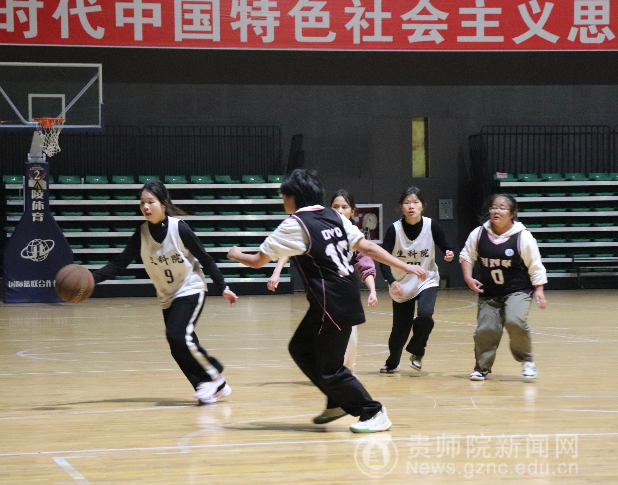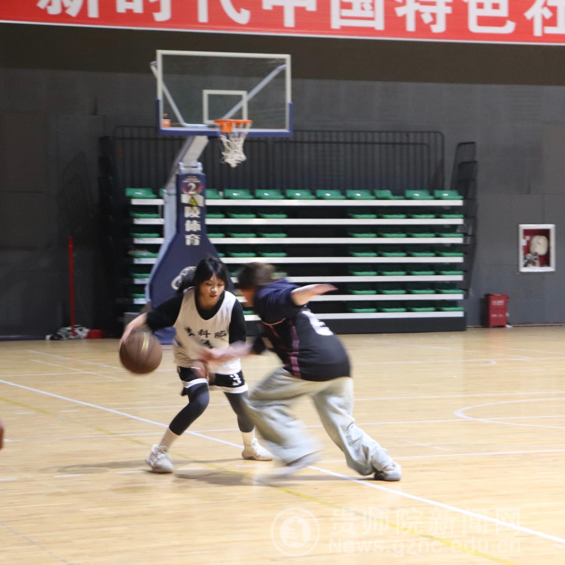 本网讯 12月3日,贵州师范学院体育馆内活力涌动,一场女篮友谊赛在此拉开帷幕。身穿白色马甲的生物科学学院球员与身穿黑色马甲的教育科学学院球员同场竞技,以球会友的氛围点亮了赛场。