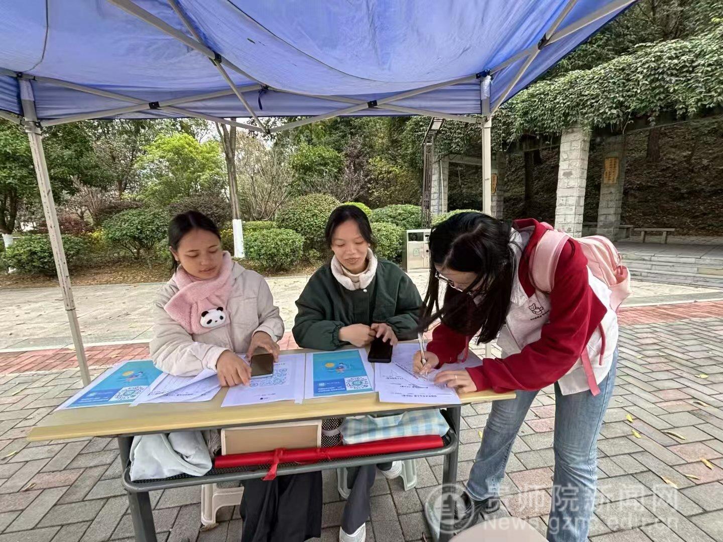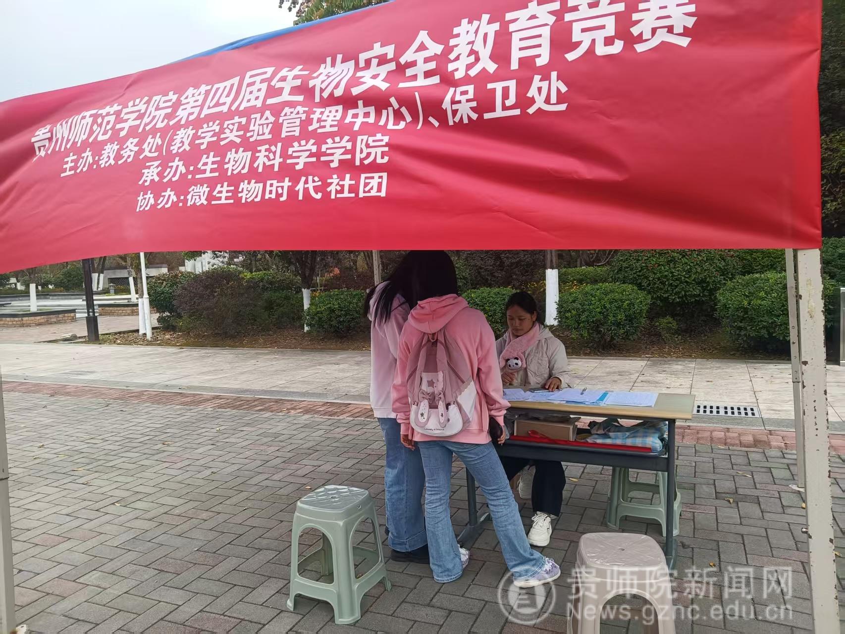 本网讯 微生物时代协会于11月17日至11月20日,贵州师范学院鉴湖旁举行第四届“生物安全筑防线,青春实践创未来”教育赛事宣传及生物安全知识大赛线下初赛。由教务处和保卫处主办、生物科学学院承办、微生物时代协会协办。他们搭起“安全知识棚子”,扫码答题、线下报名及徽章奖励等互动项目吸引不少师生驻足。线上QQ咨询群人数也是直线上升,话题讨论上万条。